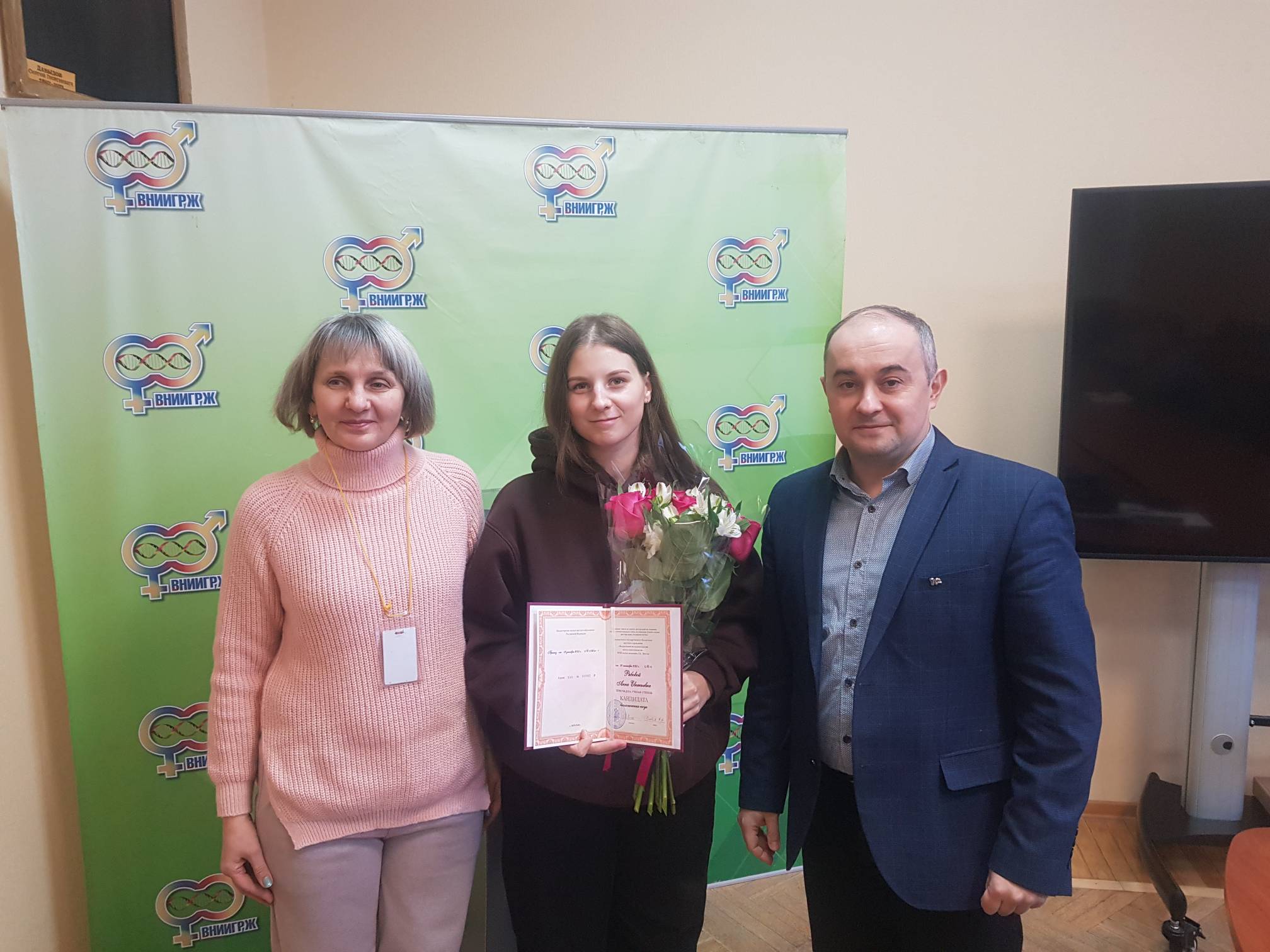 Во ВНИИГРЖ состоялось торжественное вручение диплома кандидата биологических наук Рябовой Анне Евгеньевне